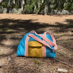 Matière : Gabardine, Canvas, en option doublé en molleton thermocollant, jean, jacquard, tissu enduit, tissu déperlant, toile à transat, toile imperméable, de la sangle coton en 4cm de large, des anneaux rectangulaires ou demi lune pour ajouter une bandouillère.